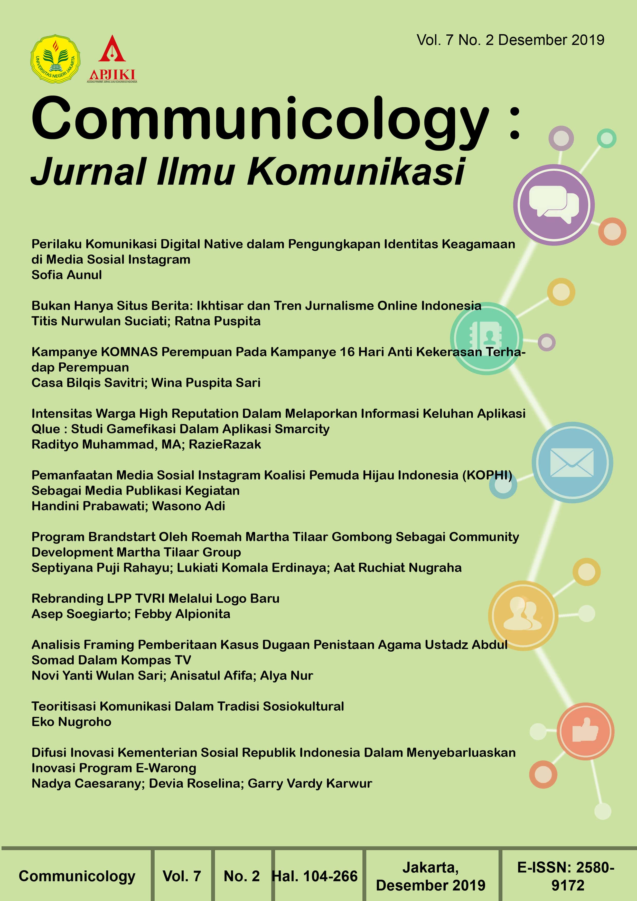 Communicology: Jurnal Ilmu Komunikasi, Volume 7 No 2 Desember 2019