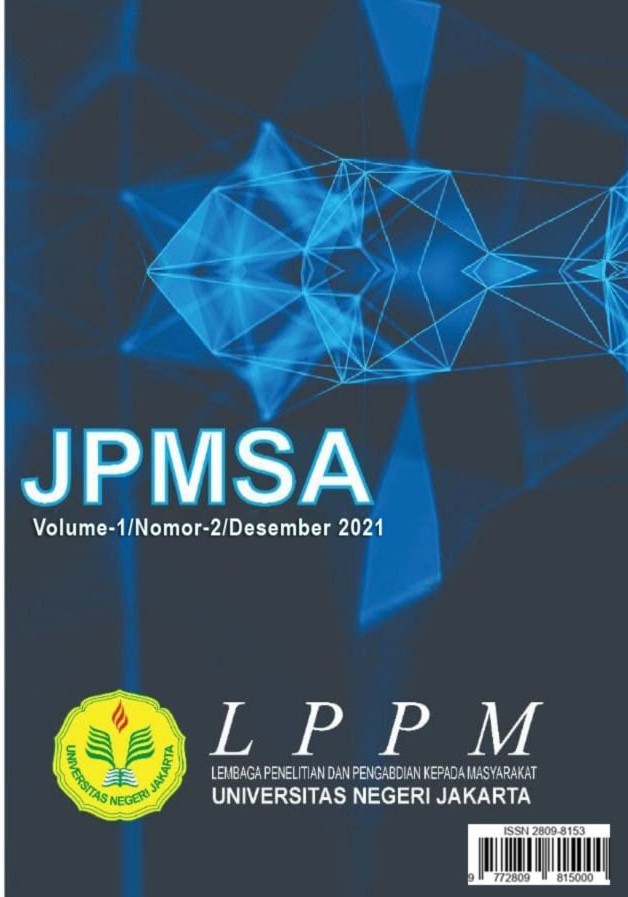 Jurnal Pengabdian Masyarakat Sains dan Aplikasinya (JPMSA) merupakan wadah publikasi hasil-hasil penelitian dan kajian ilmiah bidang Sains dan Aplikasinya yang diterapkan dan dimanfaatkan pada masyarakat, sebagai bentuk kegiatan pengabdian kepada masyarakat civitas akademik khususnya Prodi Fisika dan Pendidikan Fisika FMIPA Universitas Negeri Jakarta sesuai dengan Tridarma Perguruan Tinggi. Lingkup ranah publikasi tidak hanya terbatas pada bidang ilmu dasar (sains) seperti Fisika namun juga melingkupi bidang ilmu dasar lain seperti Kimia, Biologi, IPA dan bidang Rekayasa/Teknik, beserta aplikasinya seperti pada bidang pengembangan dan penerapan ilmu pengetahuan dan teknologi tepat guna, bidang pendidikan dan pembelajaran serta pemberdayaan masyarakat dan pembangunan berkelanjutan.
