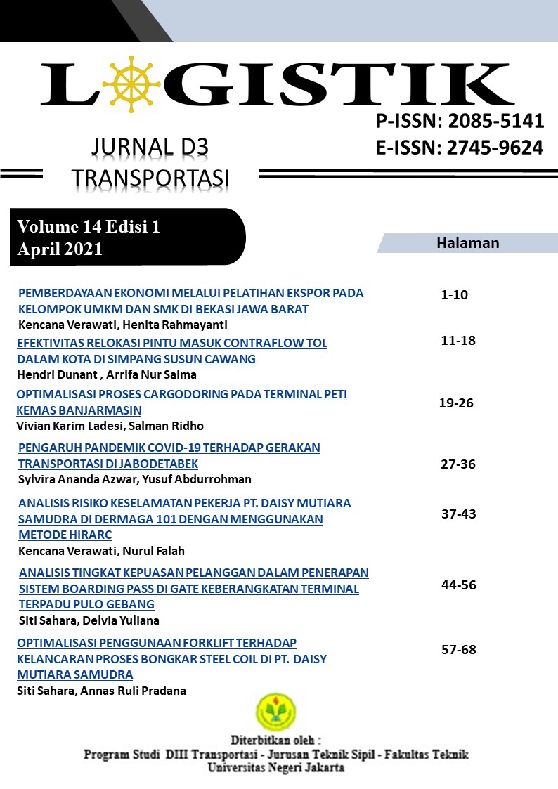 LOGISTIK : Jurnal D3 Transportasi Volume 14 Edisi 1 contains 6 articles.